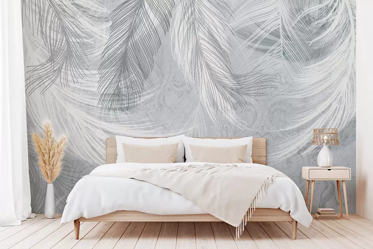Fototapeten Zarte Federn blaue Farbtöne N° w04102v1