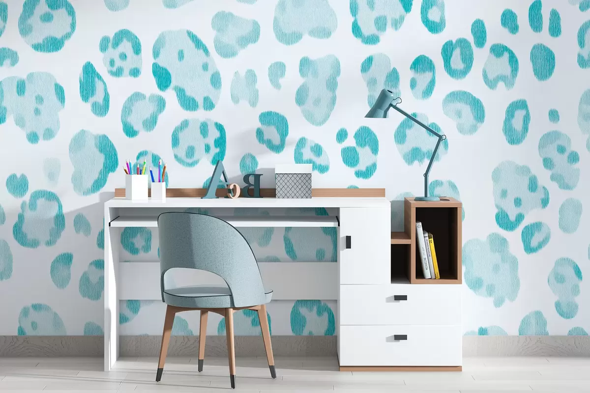 Fototapeten Leopardenmuster, Wolltextur, blaue Farbe N° w04112