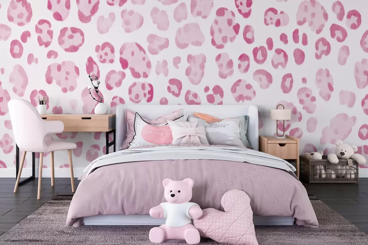 Fototapeten Leopardenmuster, Wolltextur, rosa Farbe N° w04112v2
