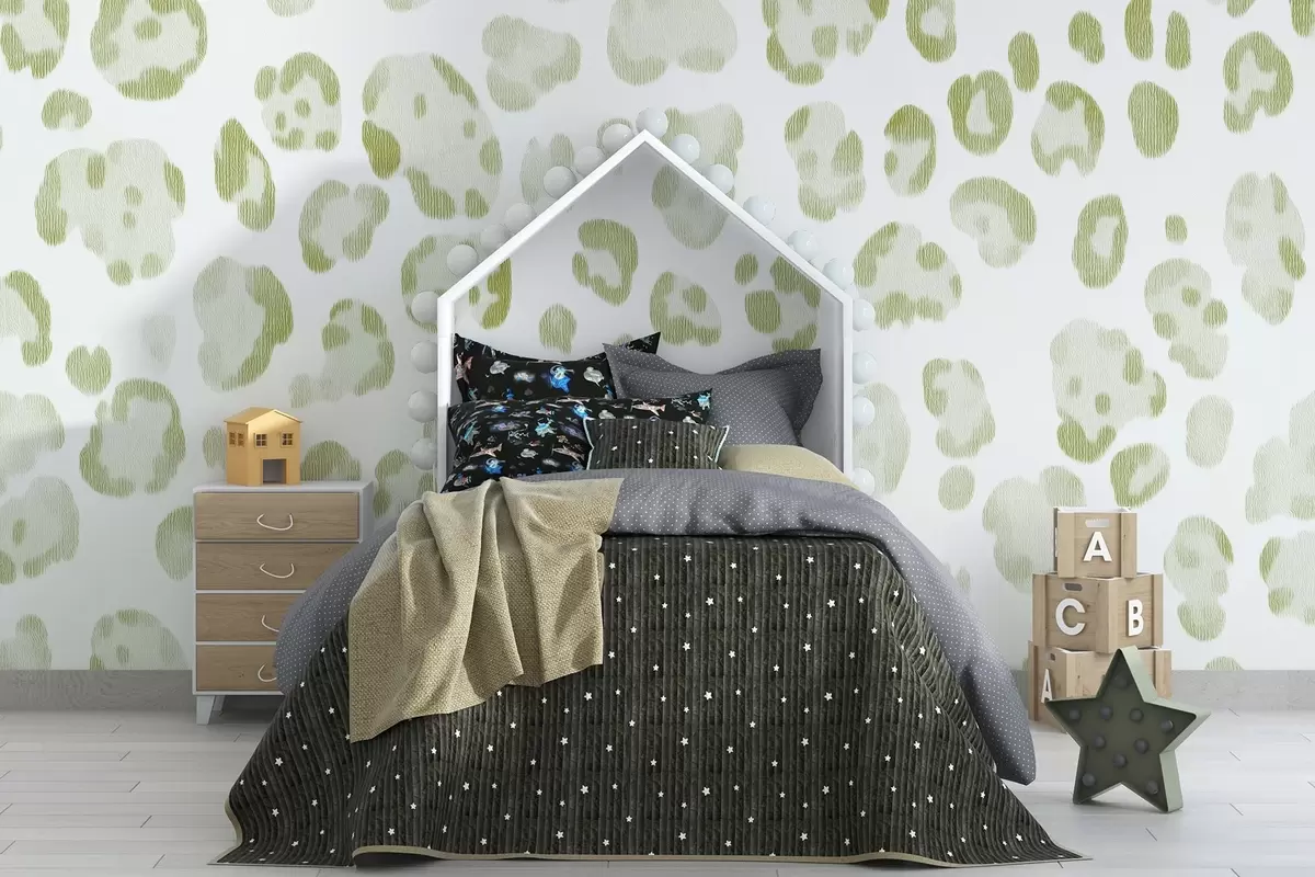 Fototapeten Leopardenmuster, Wolltextur, grüne Farbe N° w04112v3