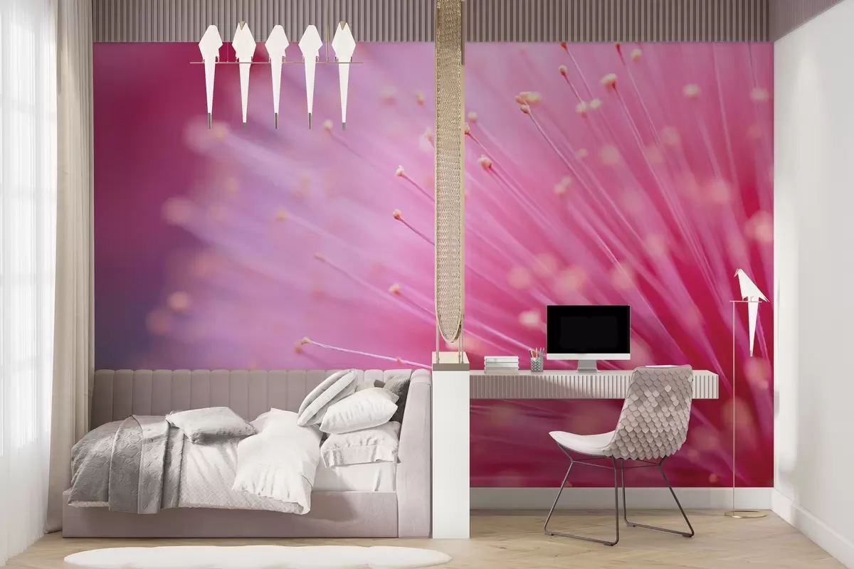 Fototapeten Rosa Staubgefäße in Makroaufnahme, zarte Abstraktion N° w04154