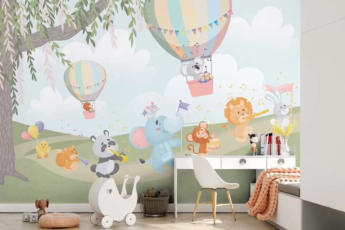 Fototapeten Landschaft mit Tieren, die Musikinstrumente spielen N° w04200