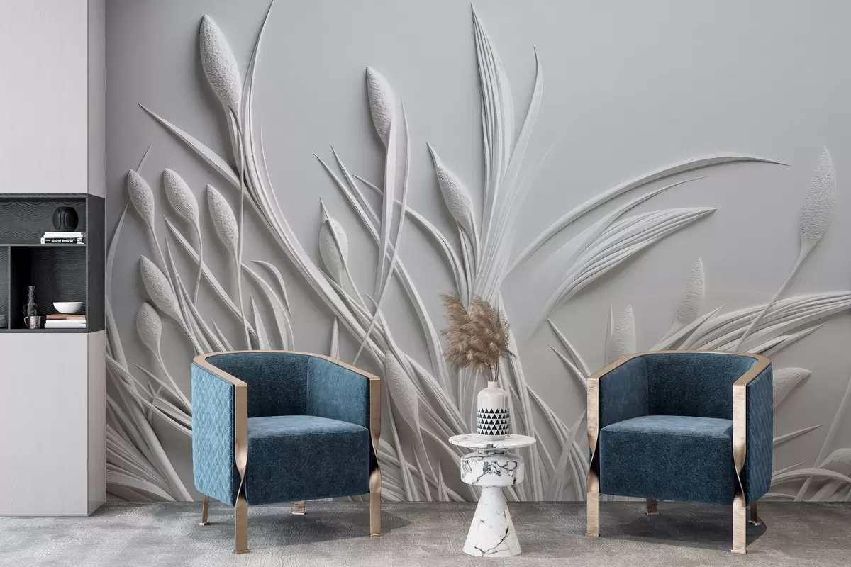 Fototapeten Flachrelief mit zarten Blättern und Pampas N° w04247