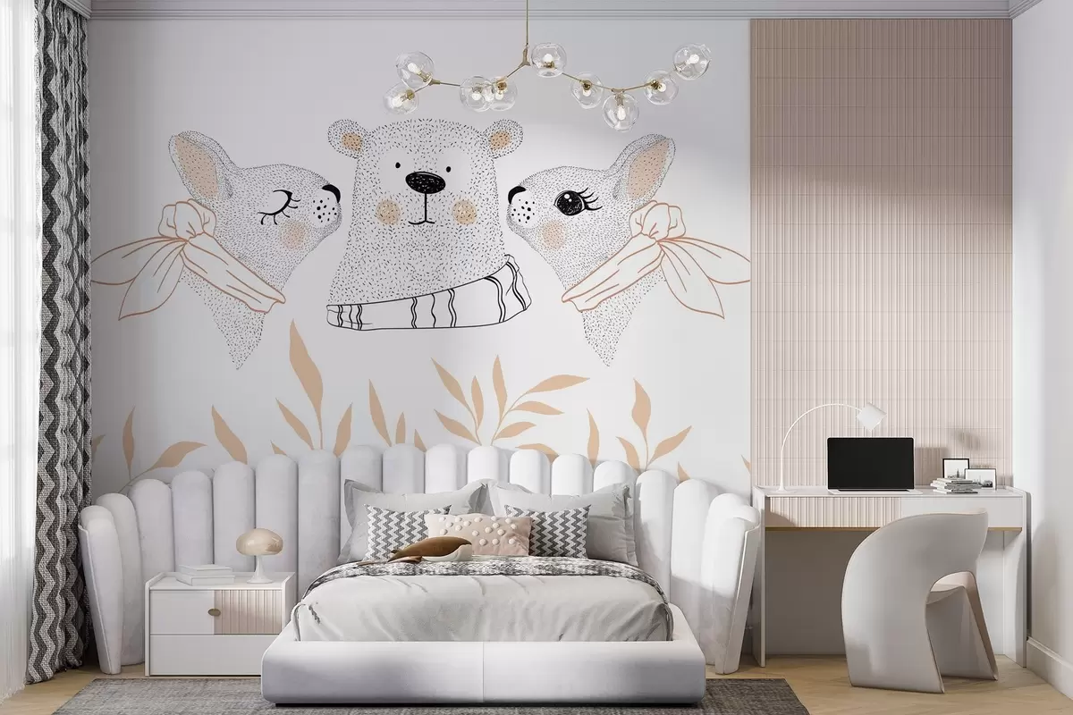 Fototapeten Lustige Tiere, Hasen und ein Bärenjunges N° w04269