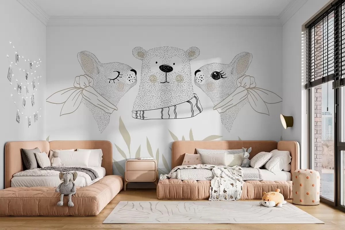 Fototapeten Lustige Tiere, Hasen und ein Bärenjunges N° w04269v1
