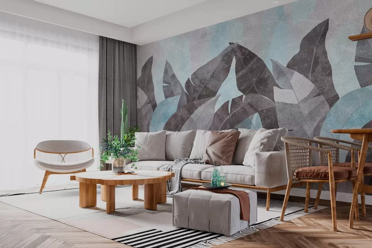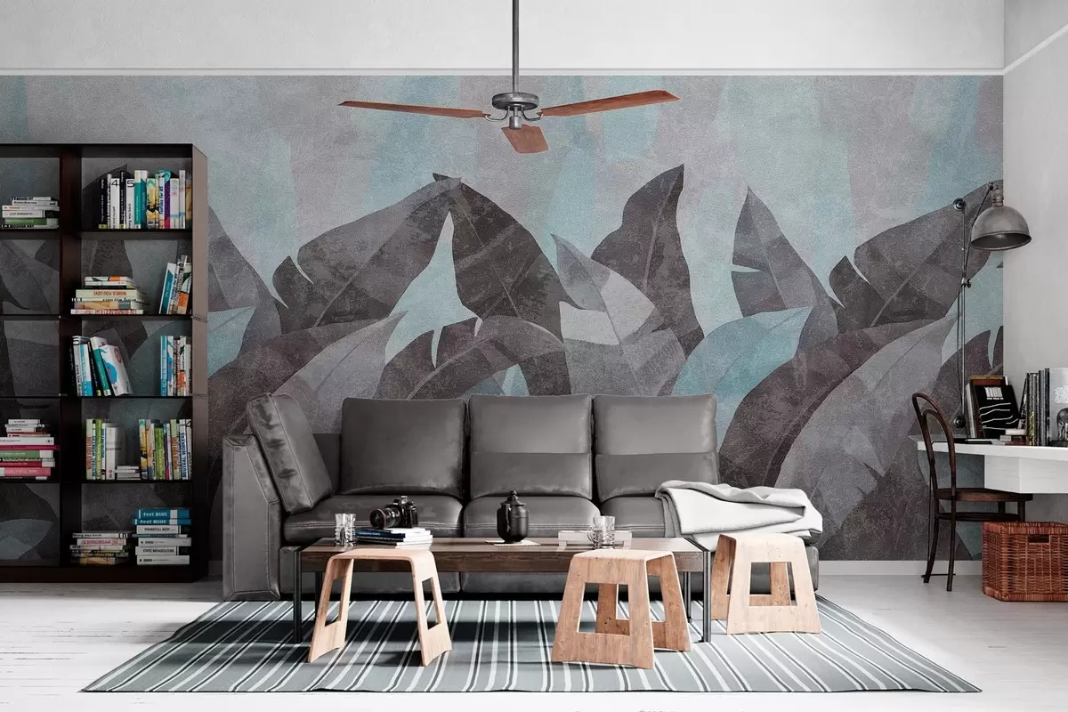 Fototapeten strukturierte Bananenblätter in Blau- und Grautönen N° w04285v2