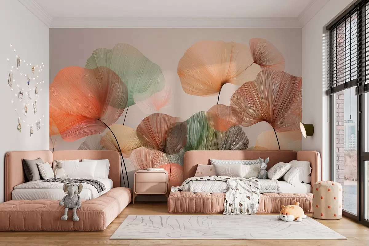 Fototapeten mehrfarbige Ginkgoblätter mit Adern N° w04305