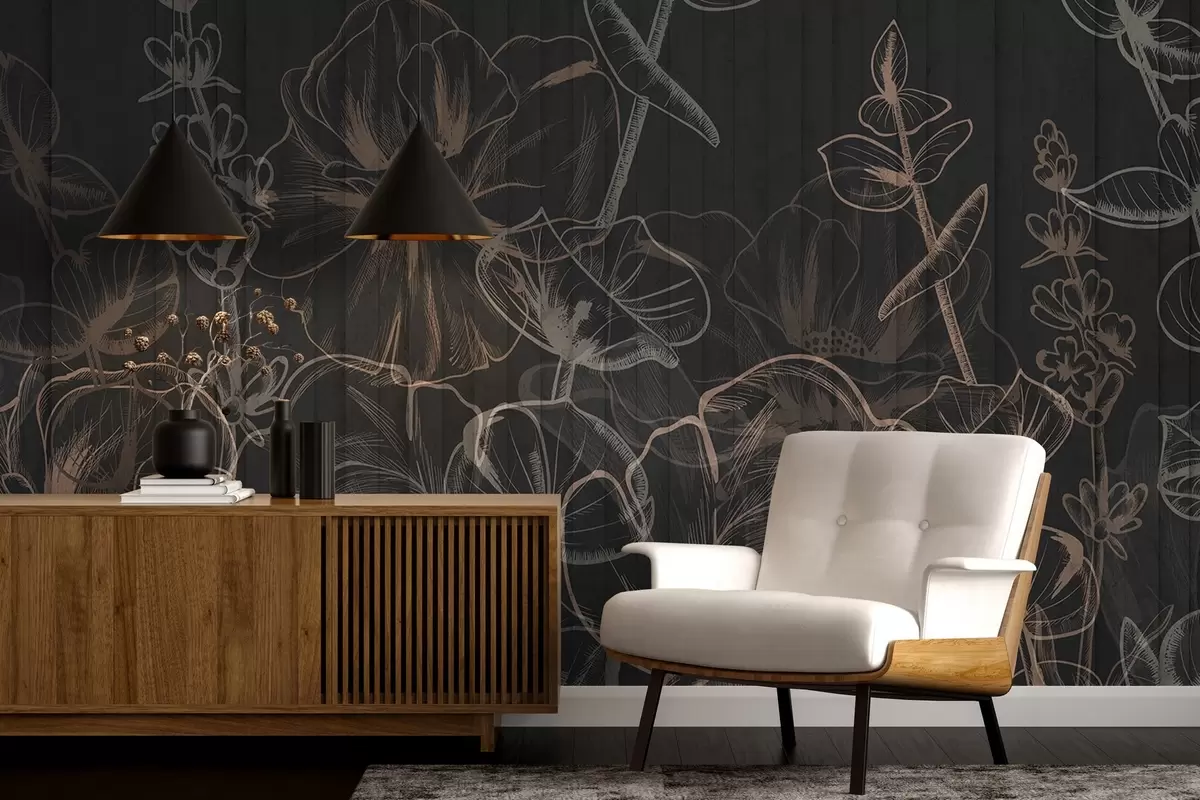 Fototapeten Pflanzensilhouetten auf einem Betonhintergrund N° w04327v2