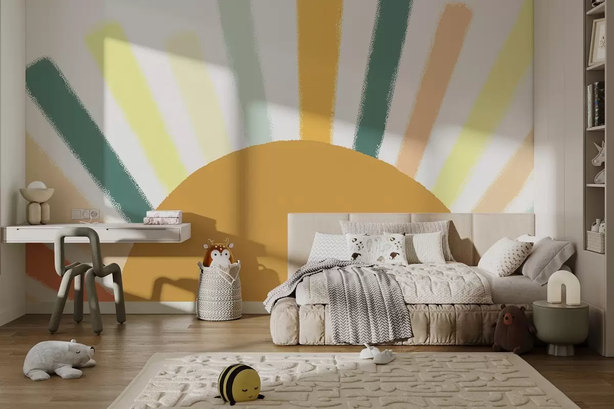 Fototapeten Abstrakte Sonne mit farbigen Strahlen N° w04352