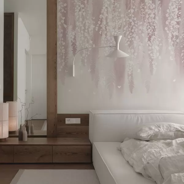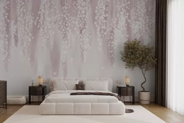 Fototapeten Rosa Version der Zweige mit weißen Blüten N° w04417v1