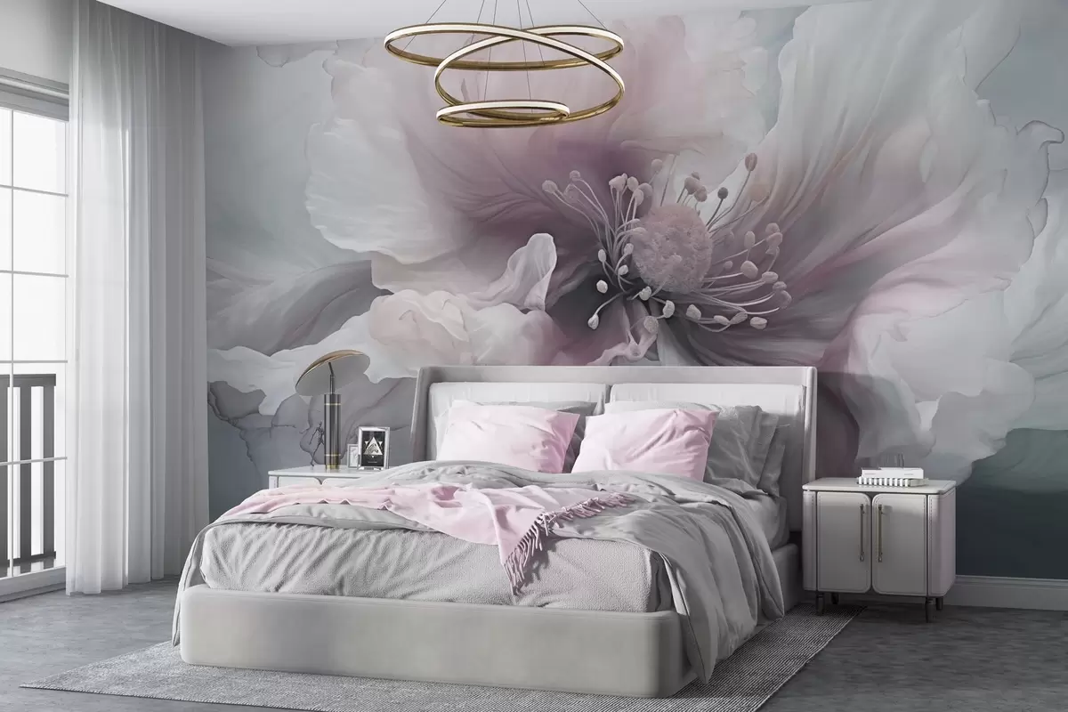 Fototapeten Zarte Blume mit rosa und weißen Blütenblättern N° w04446