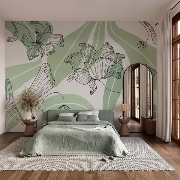 Fototapeten abstrakte Blätter und Blumen in Grüntönen N° w04499v1