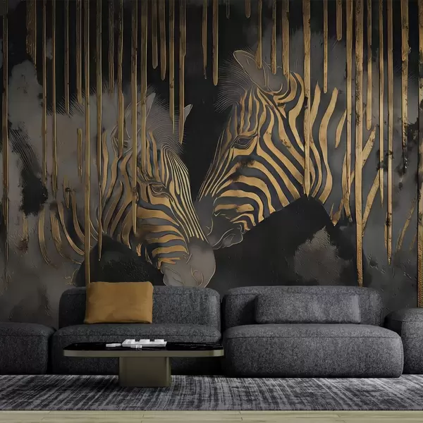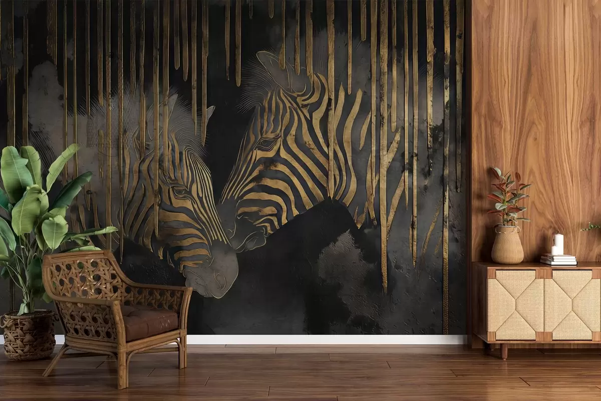 Fototapeten Zebras vor abstraktem schwarzen Hintergrund N° w04548