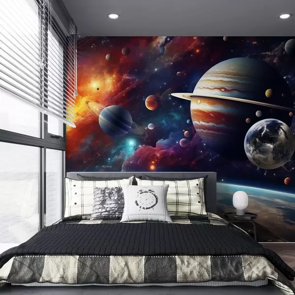 Fototapeten Bunter Kosmos mit Planeten und Nebeln N° w04576