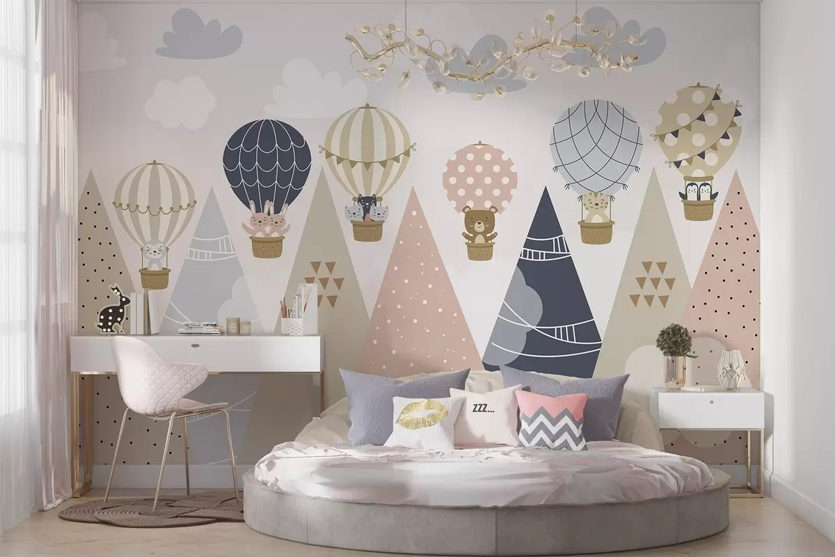Fototapeten Ballons mit Tieren über den Bergen N° w04587