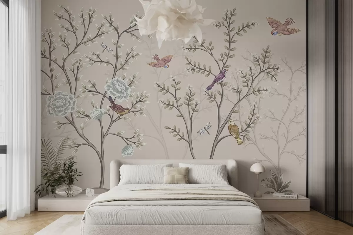Fototapeten Bäume mit Vögeln und Blumen N° w04605