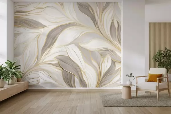 Fototapeten Blätter mit sanften Rundungen in hellbeige-grauen Farbtönen N° w04609