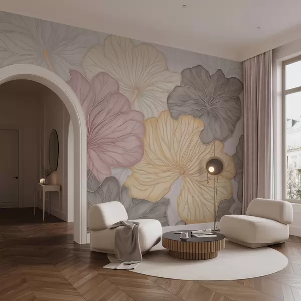 Fototapeten Große pastellfarbene Blätter mit feiner Aderung N° w04612
