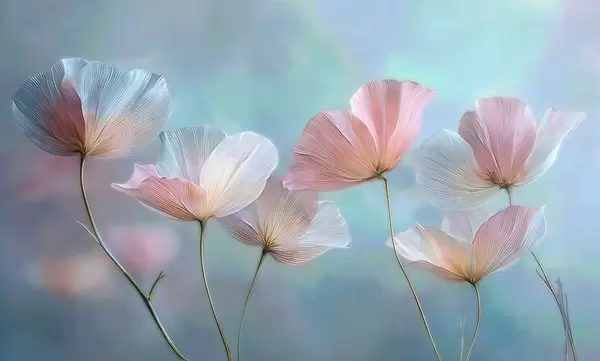 Fototapeten Transparente Blütenblätter in Pastellrosa- und Blautönen N° w04621