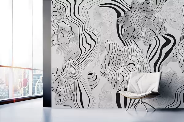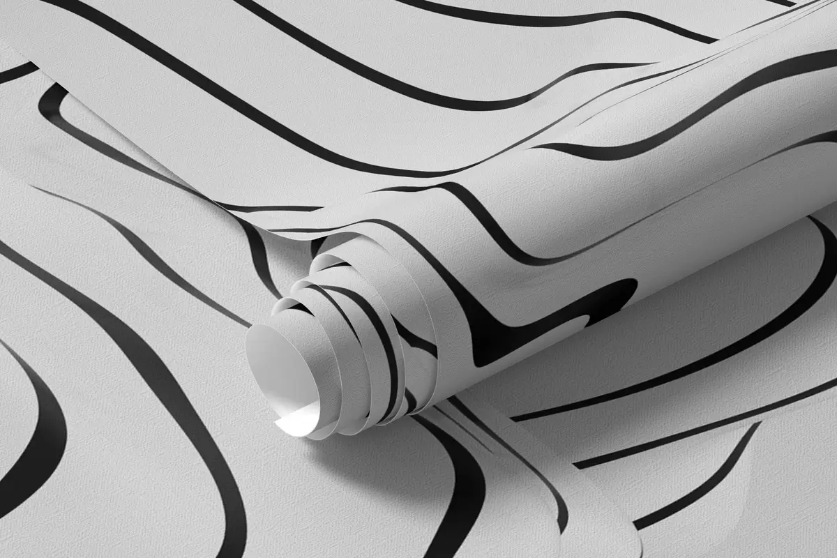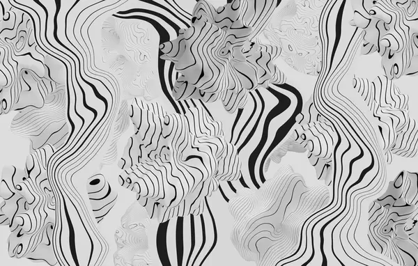 Fototapeten Abstrakte organische Formen im 3D-Stil in Weiß- und Grautönen mit schwarzen Streifen N° w04627
