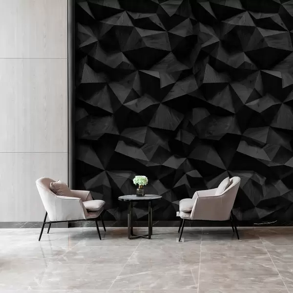 Fototapeten imitation einer eckigen Reliefwand aus dunklem Holz N° w04632v1