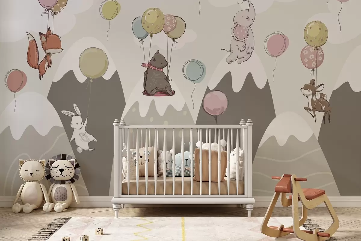 Fototapeten Skandinavische Berge für Kinder mit Tieren N° w04651