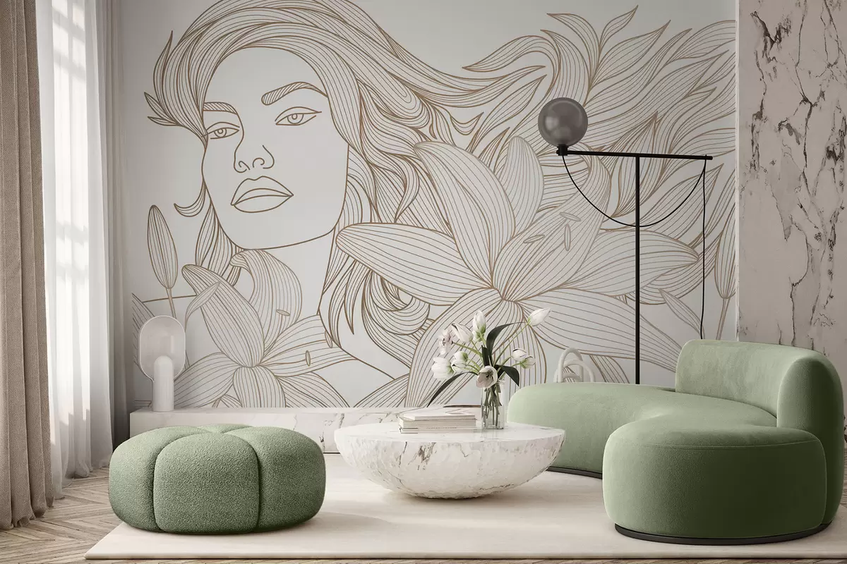 Fototapeten Porträt eines Mädchens in Lilienblüten und Beigetönen N° w04689v1
