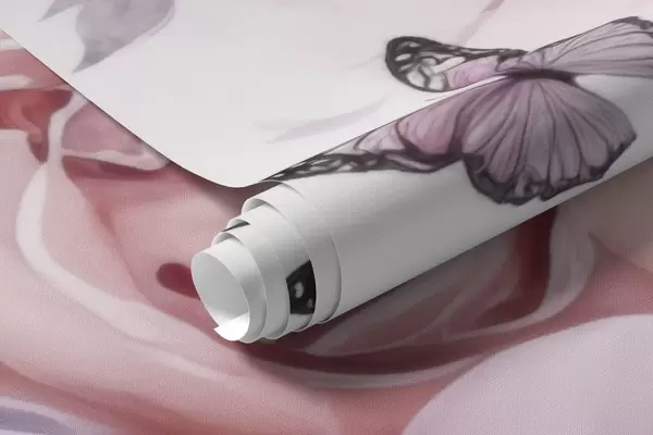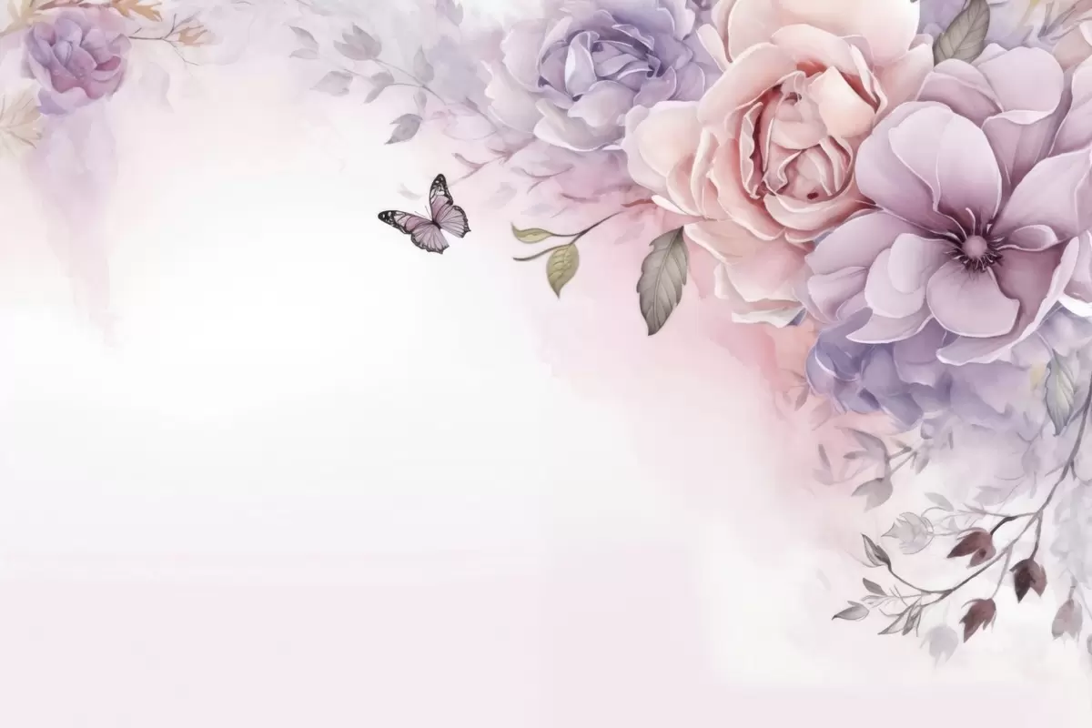 Fototapeten Zarte rosa und lila Blüten mit einem Schmetterling N° w04711