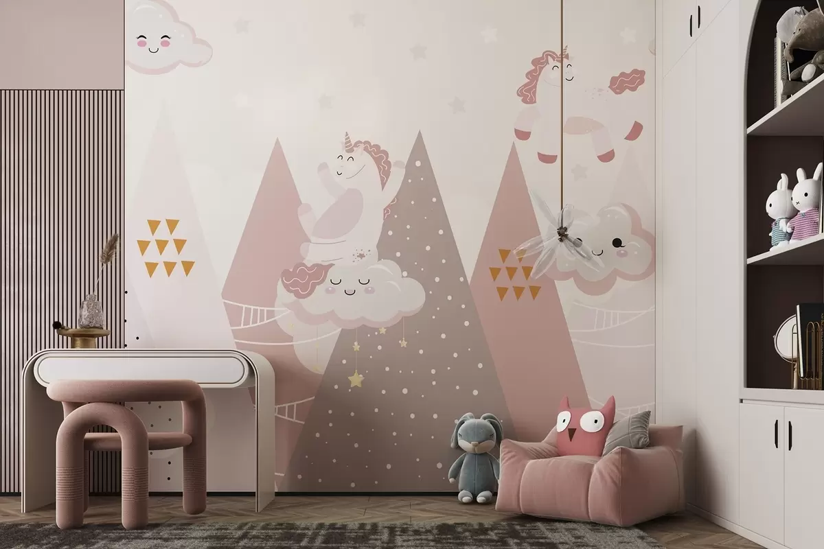 Fototapeten Pony in den Bergen mit Wolken N° w04741