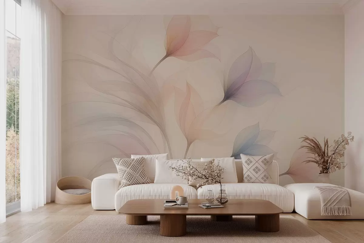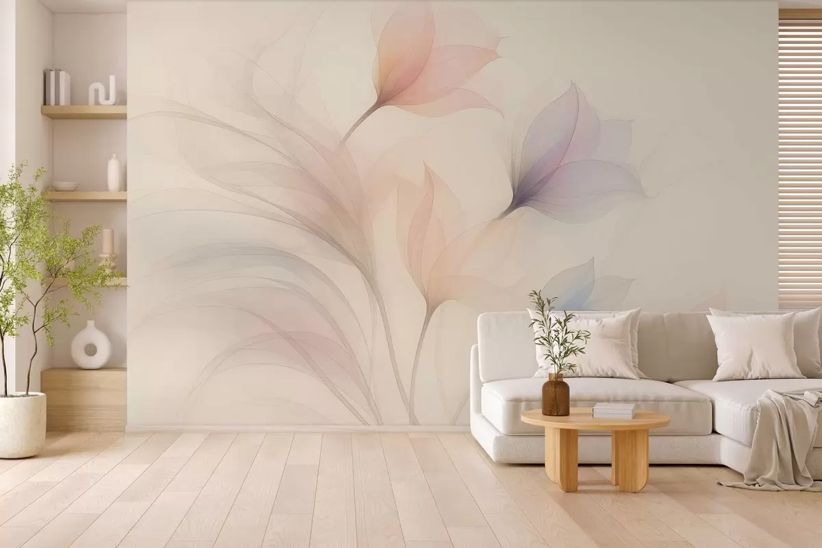 Fototapeten zarte, halbtransparente Tulpen auf beigem Hintergrund N° w04754