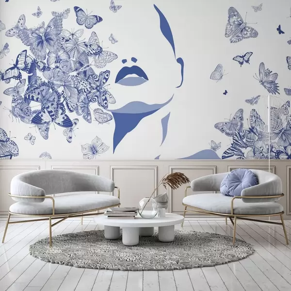 Fototapeten Silhouette eines Gesichts zwischen Schmetterlingen N° w04778v1