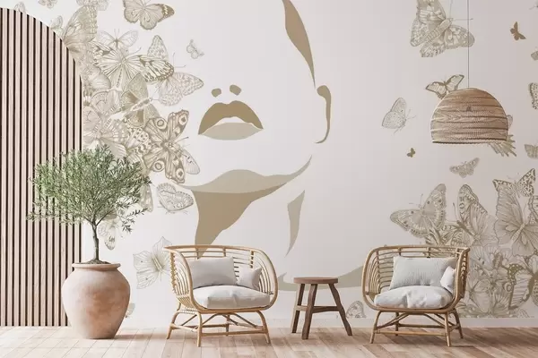 Fototapeten Silhouette eines Gesichts zwischen Schmetterlingen N° w04778v2