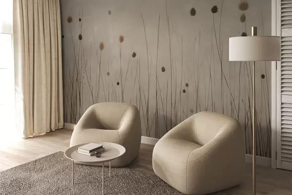 Fototapeten Dünnes Gras und flauschige Samenstände auf warmem beigem Hintergrund N° w04793