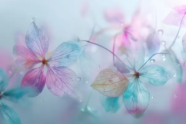 Fototapeten zarte Blumen mit Adern unter Wasser N° w04809