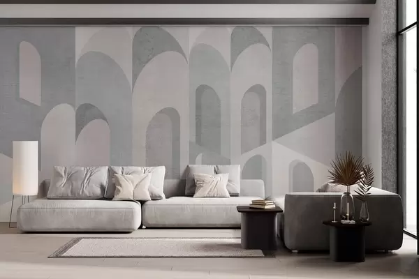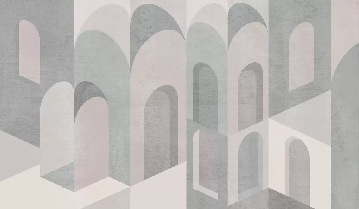 Fototapeten städtische Metamorphosen des Bogens in pudrigen Grautönen N° w04812