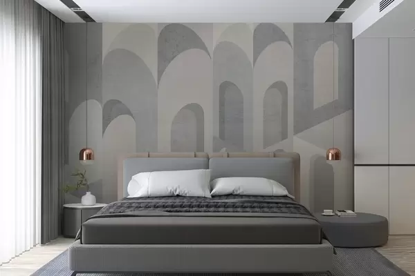 Fototapeten städtische Metamorphosen des Bogens in grauen und kühlen Beigetönen N° w04812v1