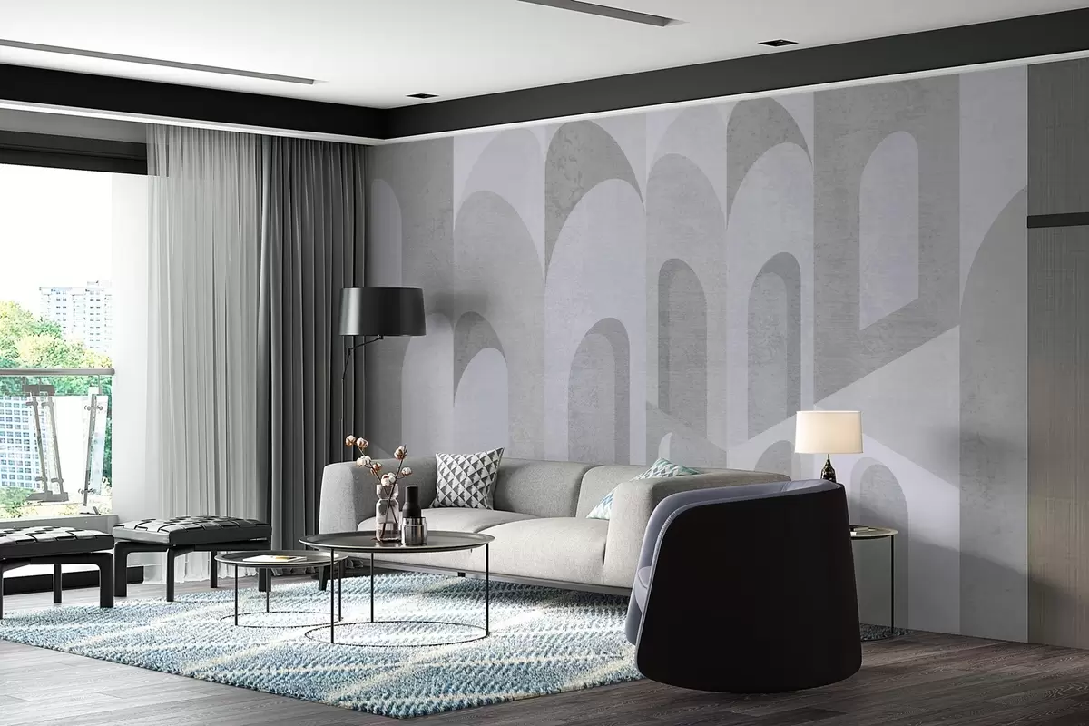 Fototapeten städtische Metamorphosen des Bogens in Grau- und Blautönen N° w04812v2
