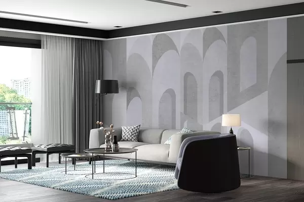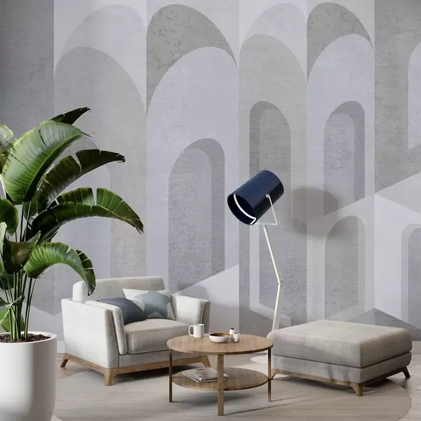 Fototapeten städtische Metamorphosen des Bogens in Grau- und Blautönen N° w04812v2