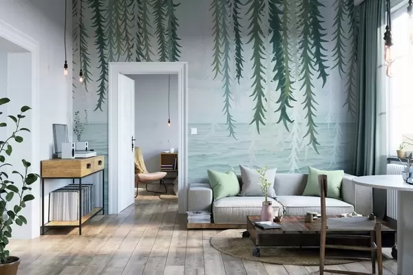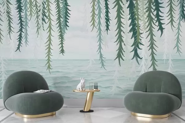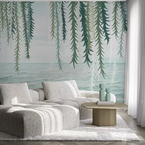 Fototapeten Zarte Reben, die über Wasser hängen, im Aquarellstil N° w04830