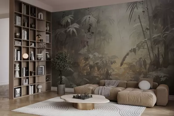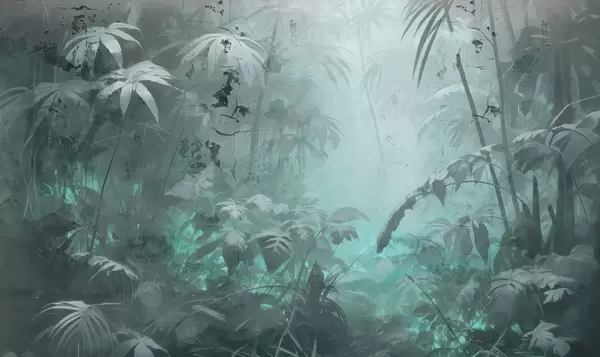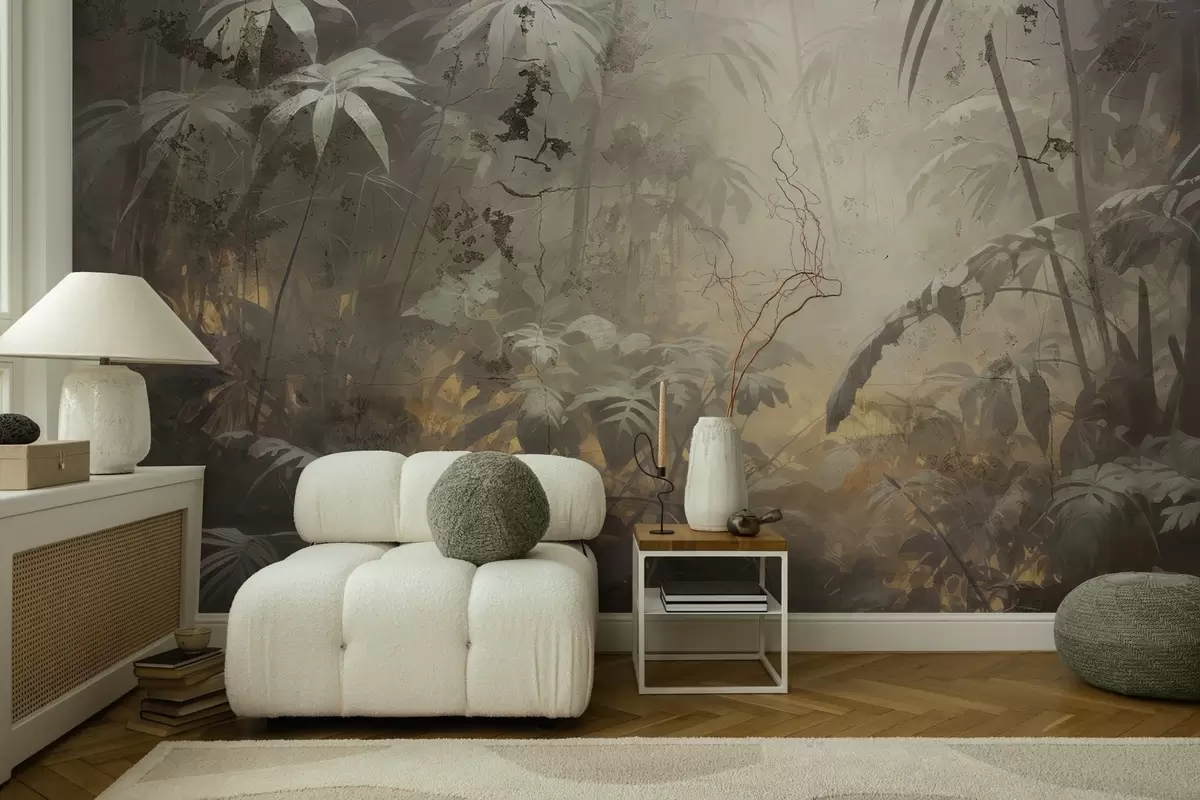 Fototapeten Bemalter Dschungel hinter einer schmuddeligen Betonwand N° w04833
