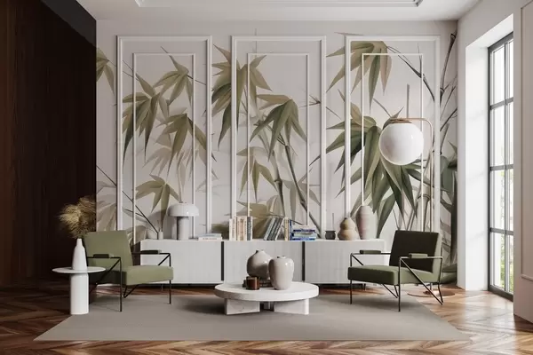 Fototapeten Bambus auf einem hellen Aquarellhintergrund N° w04834v1