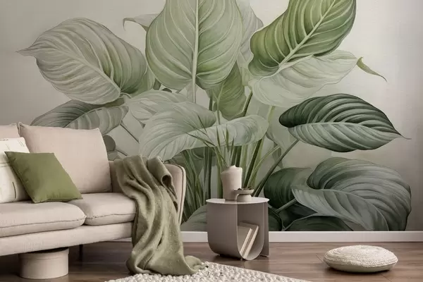 Fototapeten Üppiger Busch mit grünen Blättern an der Wand N° w04835