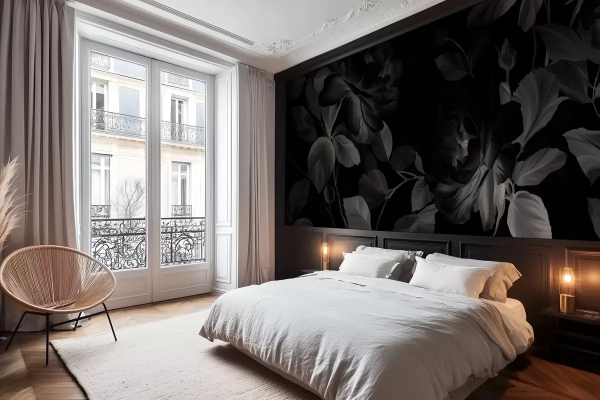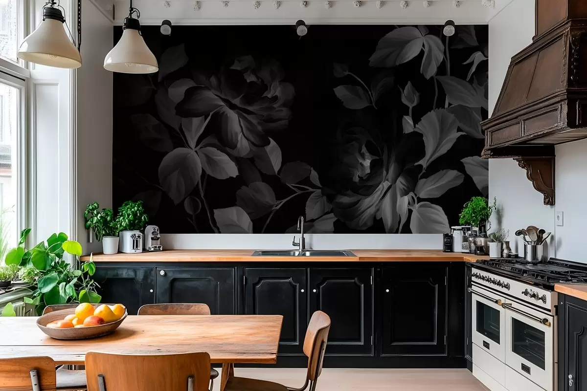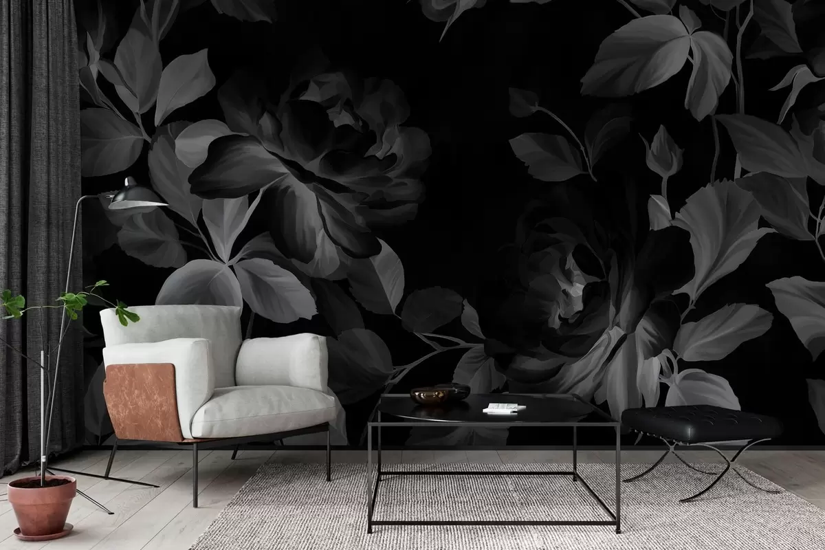 Fototapeten Schwarz-weiße malerische Rosen im Stil eines Ölgemäldes N° w04873v1