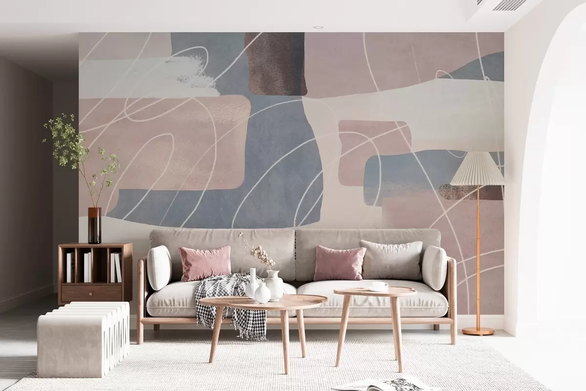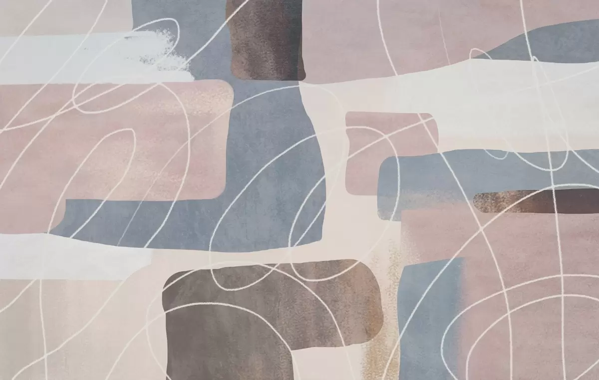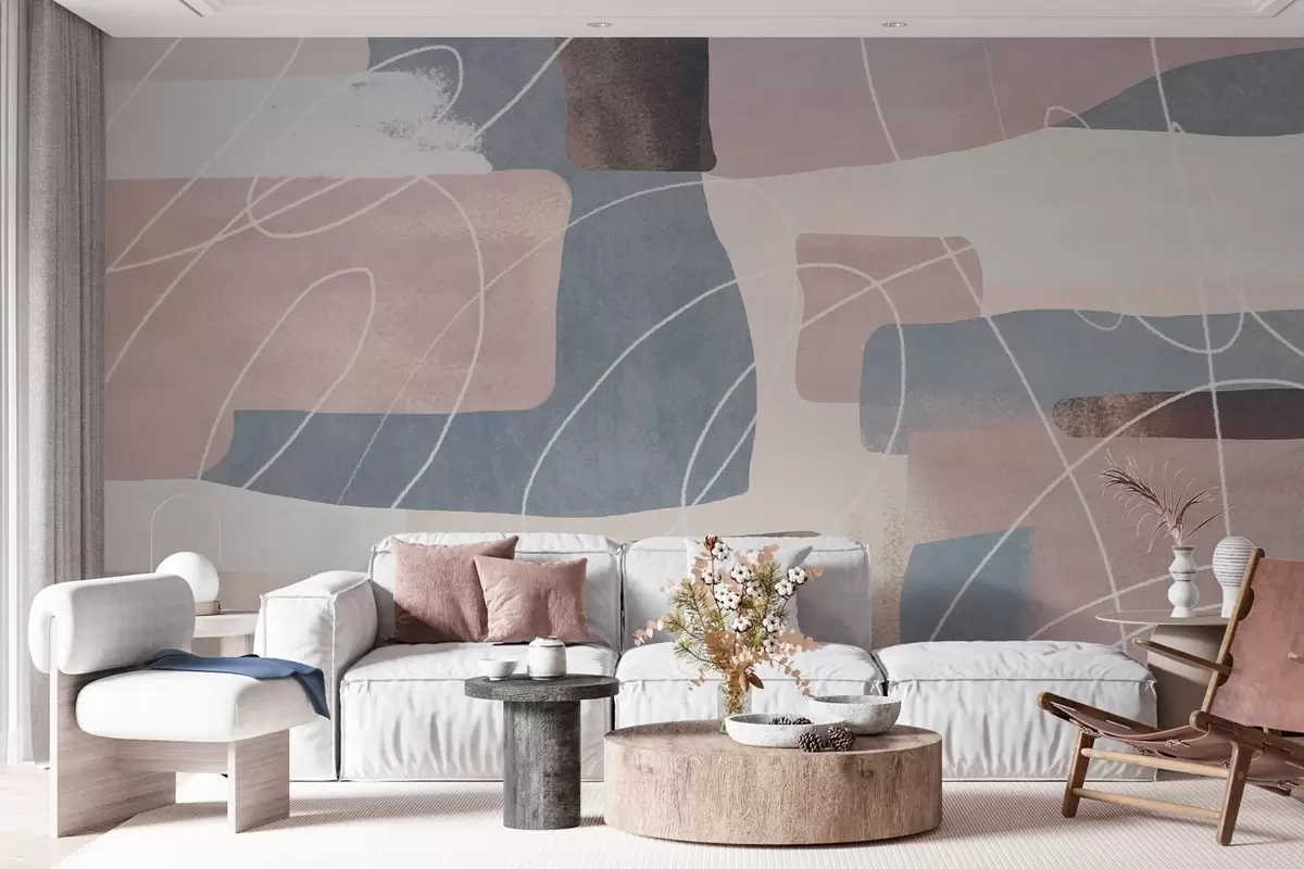 Fototapeten Moderne Abstraktion in den Farbtönen Puderrosa, Graublau, Beige und Braun N° w04877