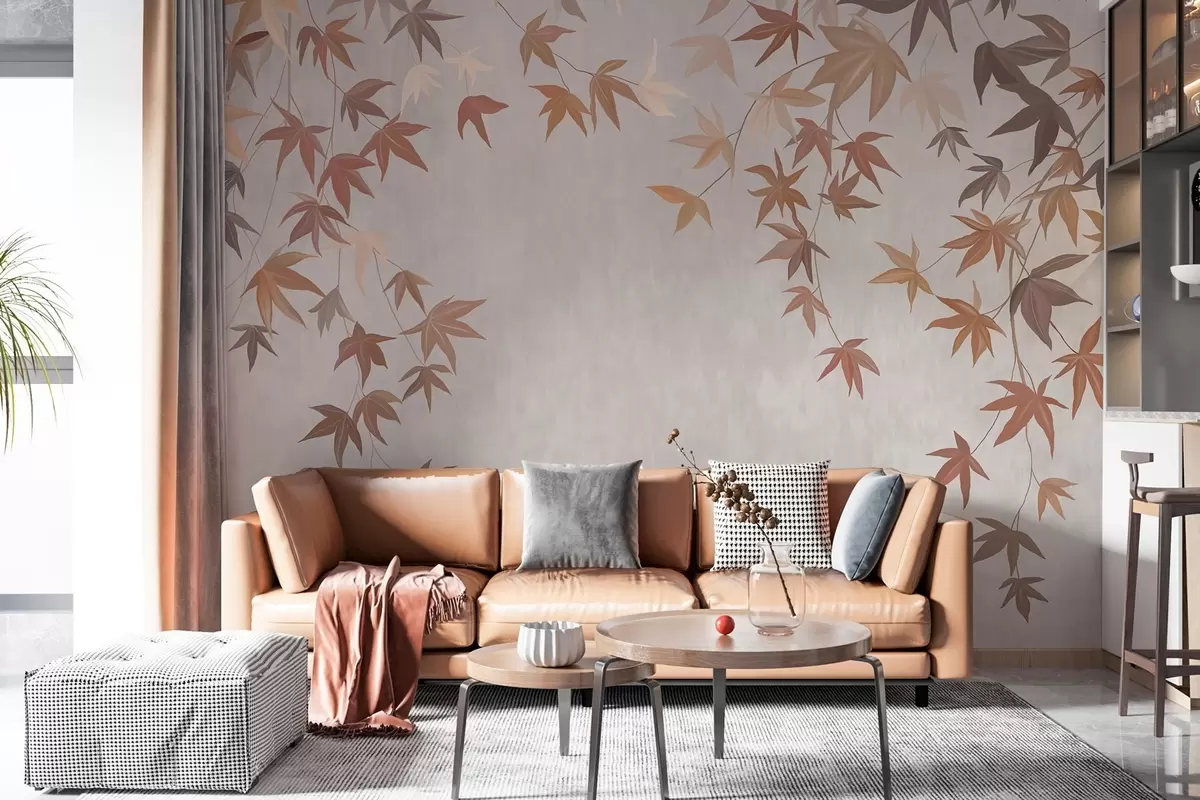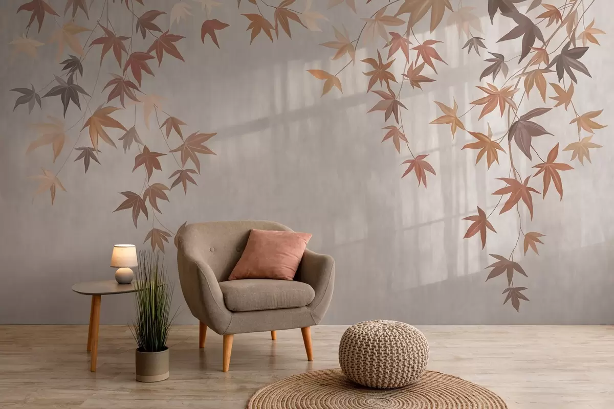 Fototapeten Bunte Efeublätter, die im Stil eines Ölgemäldes von oben herabfallen. N° w04878
