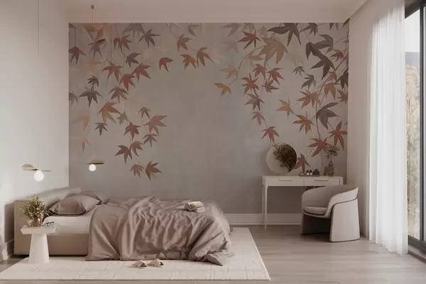 Fototapeten Bunte Efeublätter, die im Stil eines Ölgemäldes von oben herabfallen N° w04878