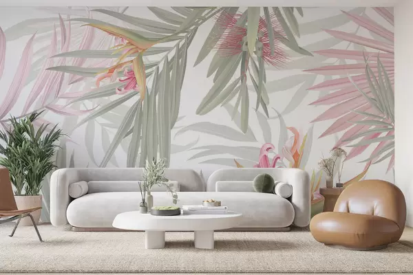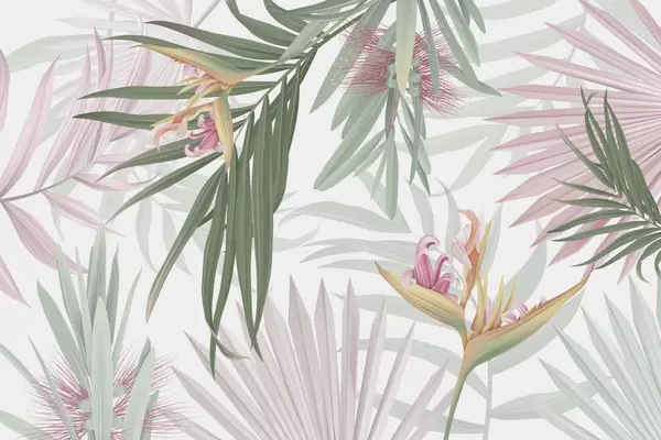 Fototapeten Strelitzia in Palmblättern N° w04896v1