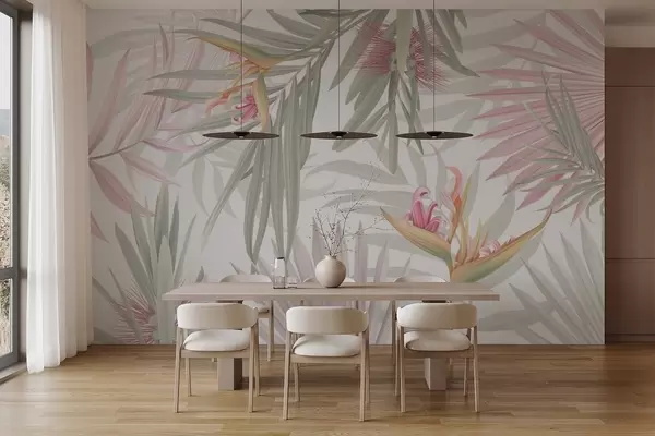 Fototapeten Strelitzia in Palmblättern N° w04896v1