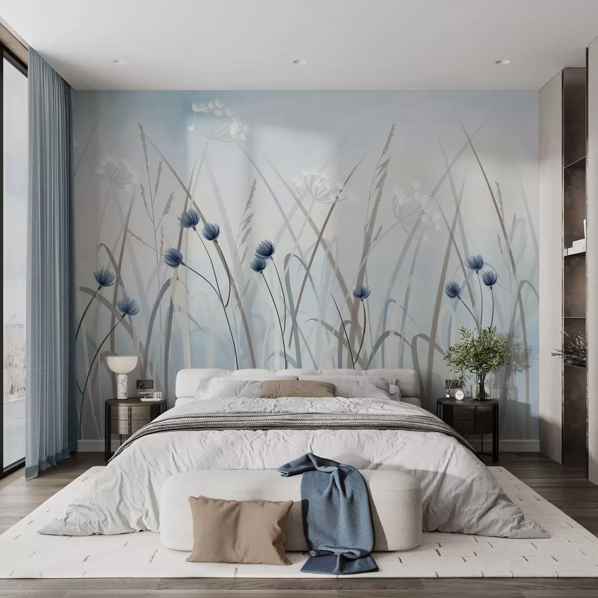 Fototapeten Gemaltes Gras und Blumen N° w04900