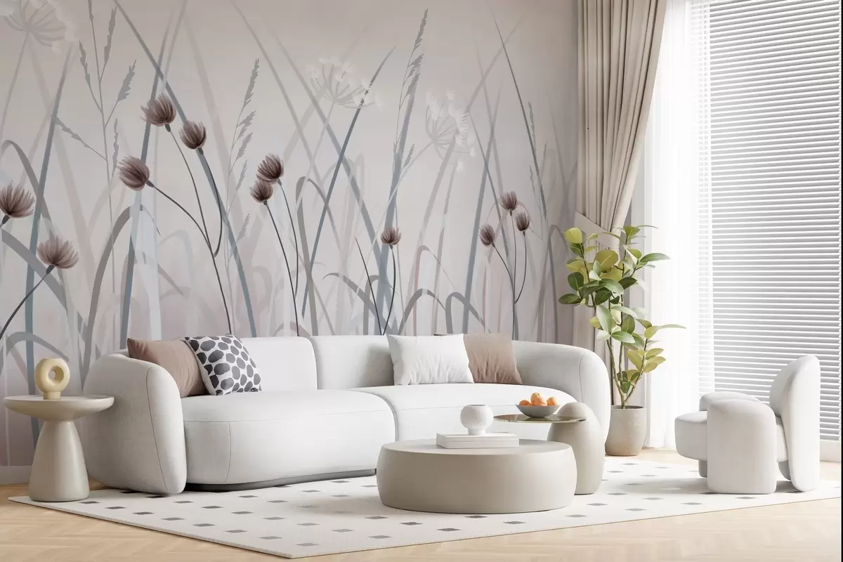 Fototapeten Gemaltes Gras und Blumen N° w04900v1
